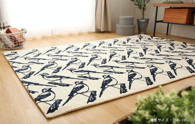 ラグ 〜リントゥラグ〜 ネイビー 130×190cm 撮影サイズ:130×190cm ブランドアイコンのトリ柄を、ヘリンボーンのように規則的に並べた北欧モダンなラグ。