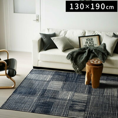 ラグ 〜ルールッカラグ〜 ネイビー 130×190cm 撮影サイズ:130×190cm 手書きのような味わいのある、シンプルなキルトデザインが絶妙におしゃれなラグ。